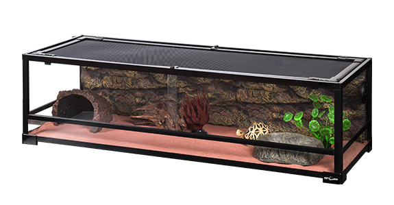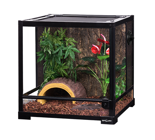 Para este tipo de reptil utilizamos terrarios verticales, las medidas mínimas son de 60x45x32 cm. Puedes utilizar terrarios de vidrio y/o malla para favorecer la circulación de aire.